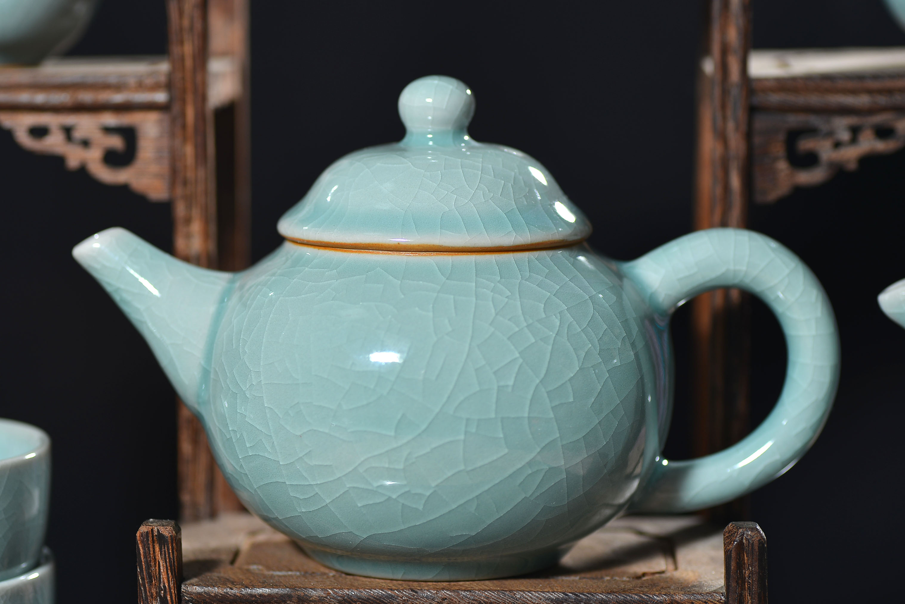 清凉寺仿古釉天青色 喜庆茶具套装 喜庆壶容量230毫升 公道210毫升 杯子50毫升。清凉寺汝瓷是中国北宋时期的主要代表瓷之一,属于五大名窑之一。清凉寺汝瓷的历史可以追溯到北宋时期,当时的宋王朝为了满足宫廷的特殊需要,设立了汝官窑。这个窑场生产的汝瓷以其独特的美学风格和高*的制作工艺而闻名,被视为青瓷之典范。清凉寺汝官窑遗址是在上世纪被发现的,这一发现揭开了汝官窑消失的千古之谜。自1987年以来,河南省文物考古研究所对清凉寺汝窑遗址进行了多次发掘,发现了大量重要的烧造设施和汝窑瓷器标本。清凉寺汝瓷的艺术特色体现在其独特的制作工艺和美学风格上。它以其工艺精湛、造型秀美、釉面蕴润、高雅素净的丰韵而独具风采。汝瓷的制作工艺包括使用名贵玛瑙为釉,釉色独特,随光变幻,呈现出“雨过天晴云破处”“千峰碧波翠色来”的美妙效果。此外,汝瓷的胎体厚重,釉厚而声如磬。汝瓷的形状古朴大方,器表呈蝉翼纹细小开片,具有“梨皮、蟹爪、芝麻花”的特点。这些装饰手法使得汝瓷不仅美观而且富有变化,被世人称为“似玉、非玉、而胜玉”。