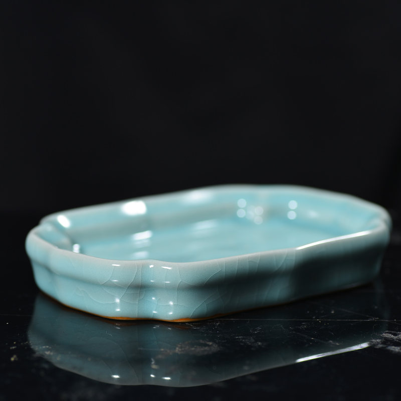 清凉寺仿古釉天青色 壶承 长14厘米 高2厘米 宽11厘米。清凉寺汝瓷是中国北宋时期的主要代表瓷之一,属于五大名窑之一。清凉寺汝瓷的历史可以追溯到北宋时期,当时的宋王朝为了满足宫廷的特殊需要,设立了汝官窑。这个窑场生产的汝瓷以其独特的美学风格和高*的制作工艺而闻名,被视为青瓷之典范。清凉寺汝官窑遗址是在上世纪被发现的,这一发现揭开了汝官窑消失的千古之谜。自1987年以来,河南省文物考古研究所对清凉寺汝窑遗址进行了多次发掘,发现了大量重要的烧造设施和汝窑瓷器标本。清凉寺汝瓷的艺术特色体现在其独特的制作工艺和美学风格上。它以其工艺精湛、造型秀美、釉面蕴润、高雅素净的丰韵而独具风采。汝瓷的制作工艺包括使用名贵玛瑙为釉,釉色独特,随光变幻,呈现出“雨过天晴云破处”“千峰碧波翠色来”的美妙效果。此外,汝瓷的胎体厚重,釉厚而声如磬。汝瓷的形状古朴大方,器表呈蝉翼纹细小开片,具有“梨皮、蟹爪、芝麻花”的特点。这些装饰手法使得汝瓷不仅美观而且富有变化,被世人称为“似玉、非玉、而胜玉”。