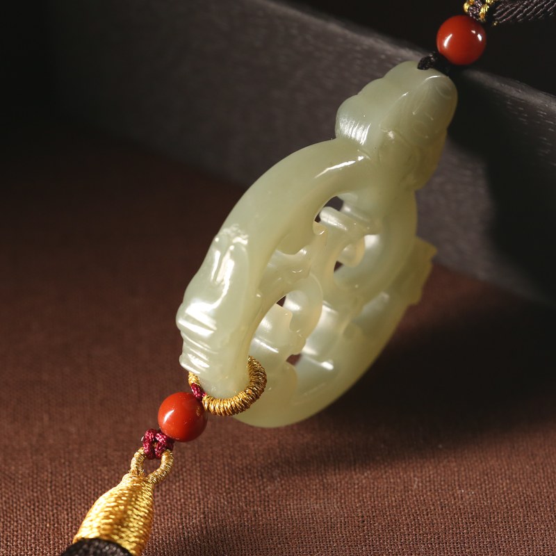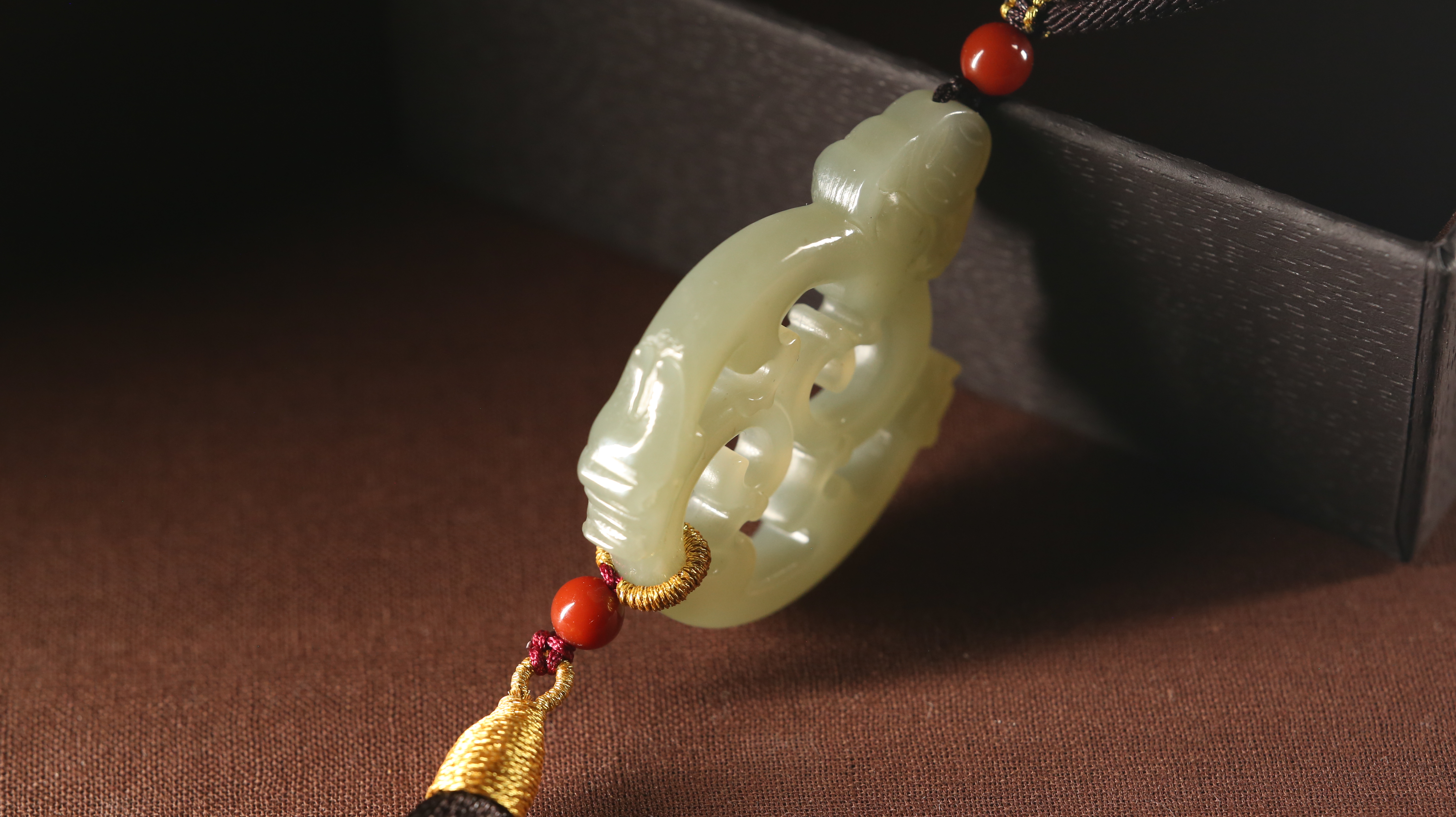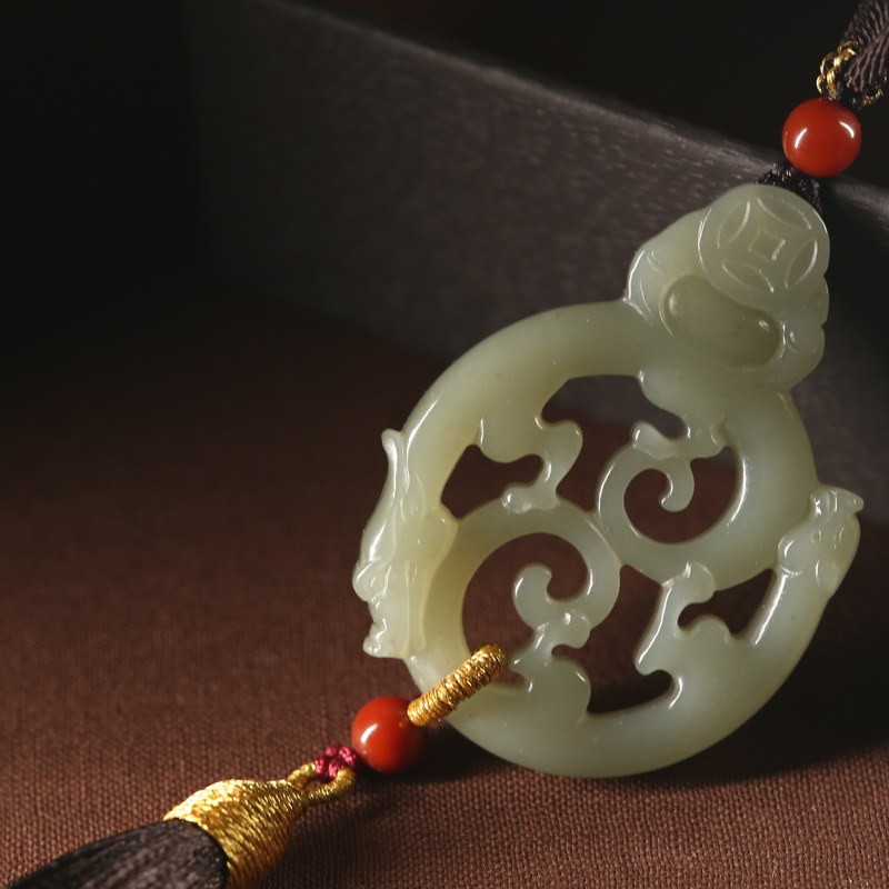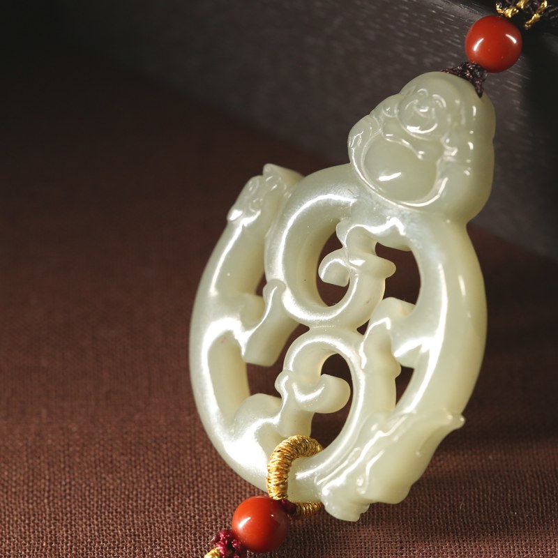 3弥勒佛公龙虎镂空吊坠(青白) 本场迎新春特别拍卖会汇聚王者老师指导设计的几件守护——弥勒佛公龙虎镂空吊坠,其中5件且末蓝调款为春节定制;白玉、红玛瑙、黑青、青白玉几款为守护吊坠设计原型样品,未公开发行!!值此新春佳节,本场拍品全部无底价起拍,成交拍品均会赠送一份特别新年好礼,钜惠迎新,吉祥到家!马年大吉! 说明:贵重物品,为了保证快递时效及物品安全,本场成交拍品如需年前发货请联系官方客服确认!!