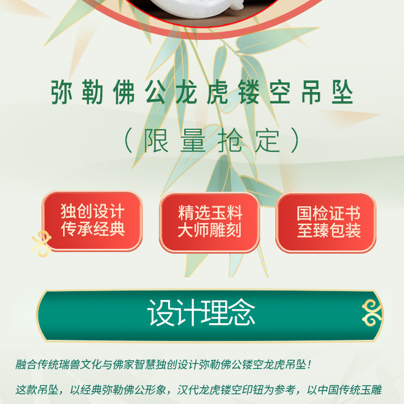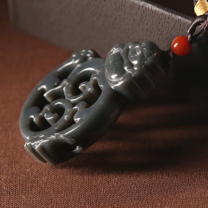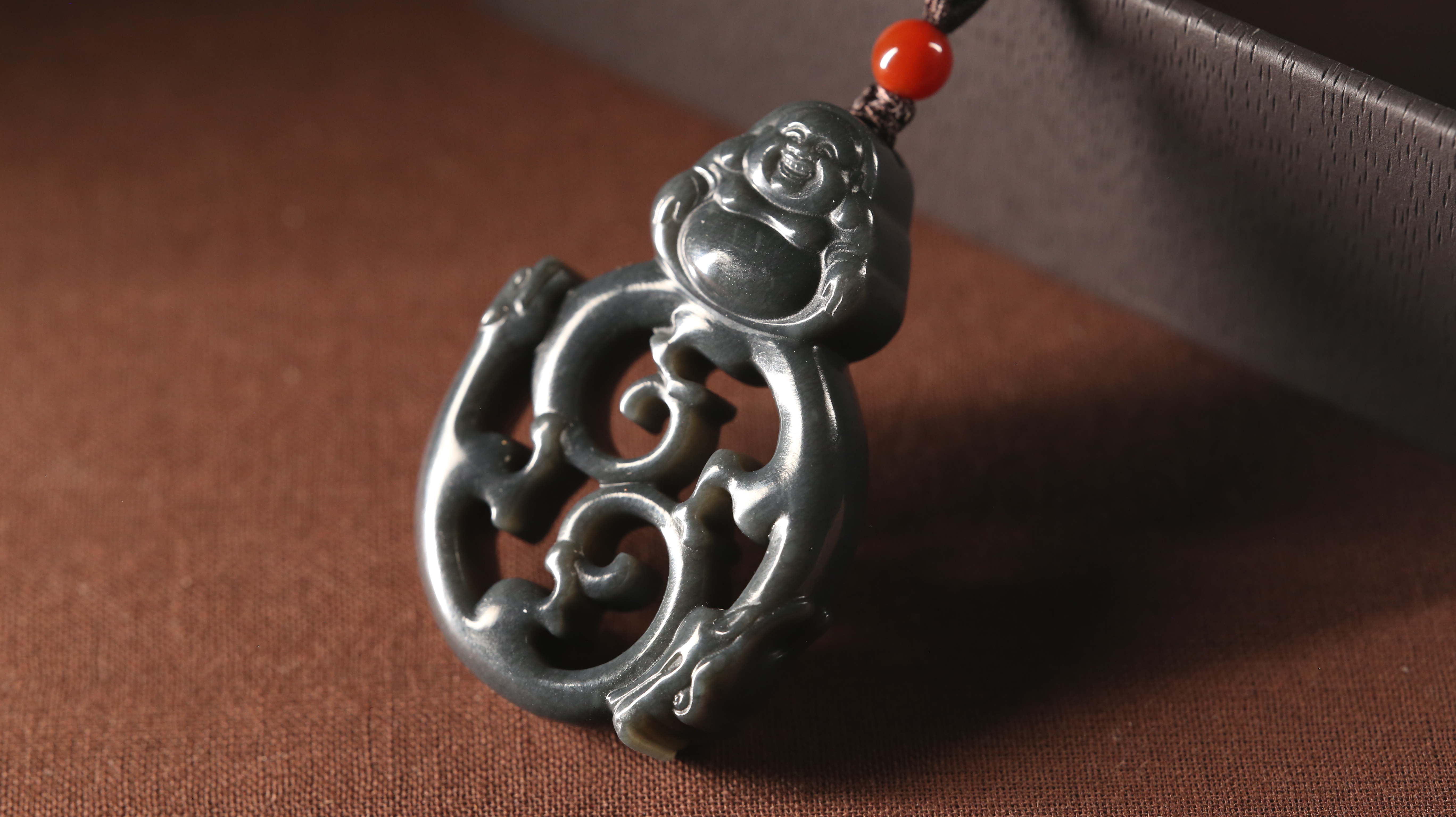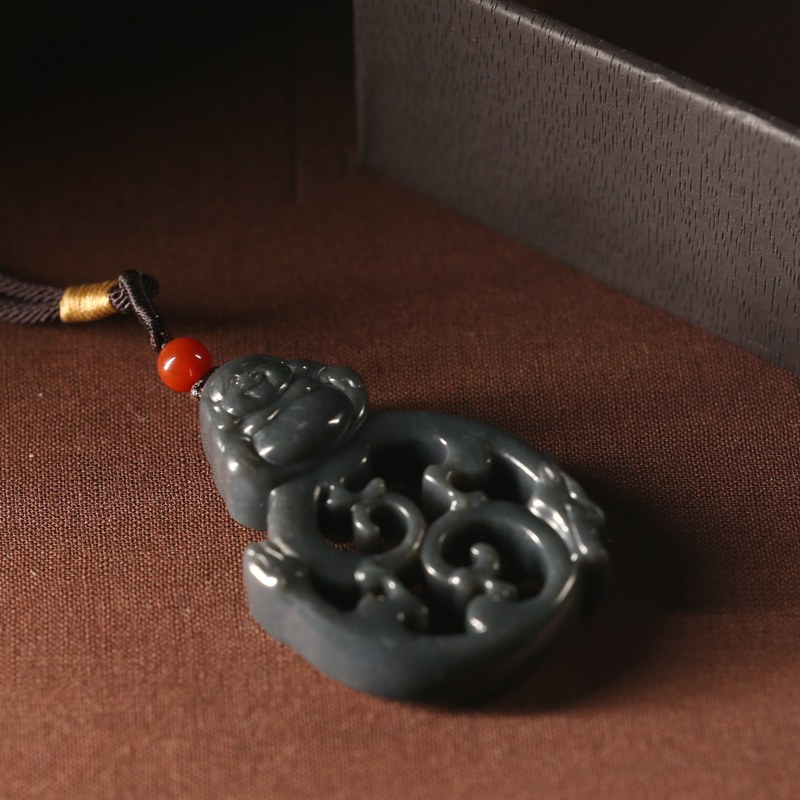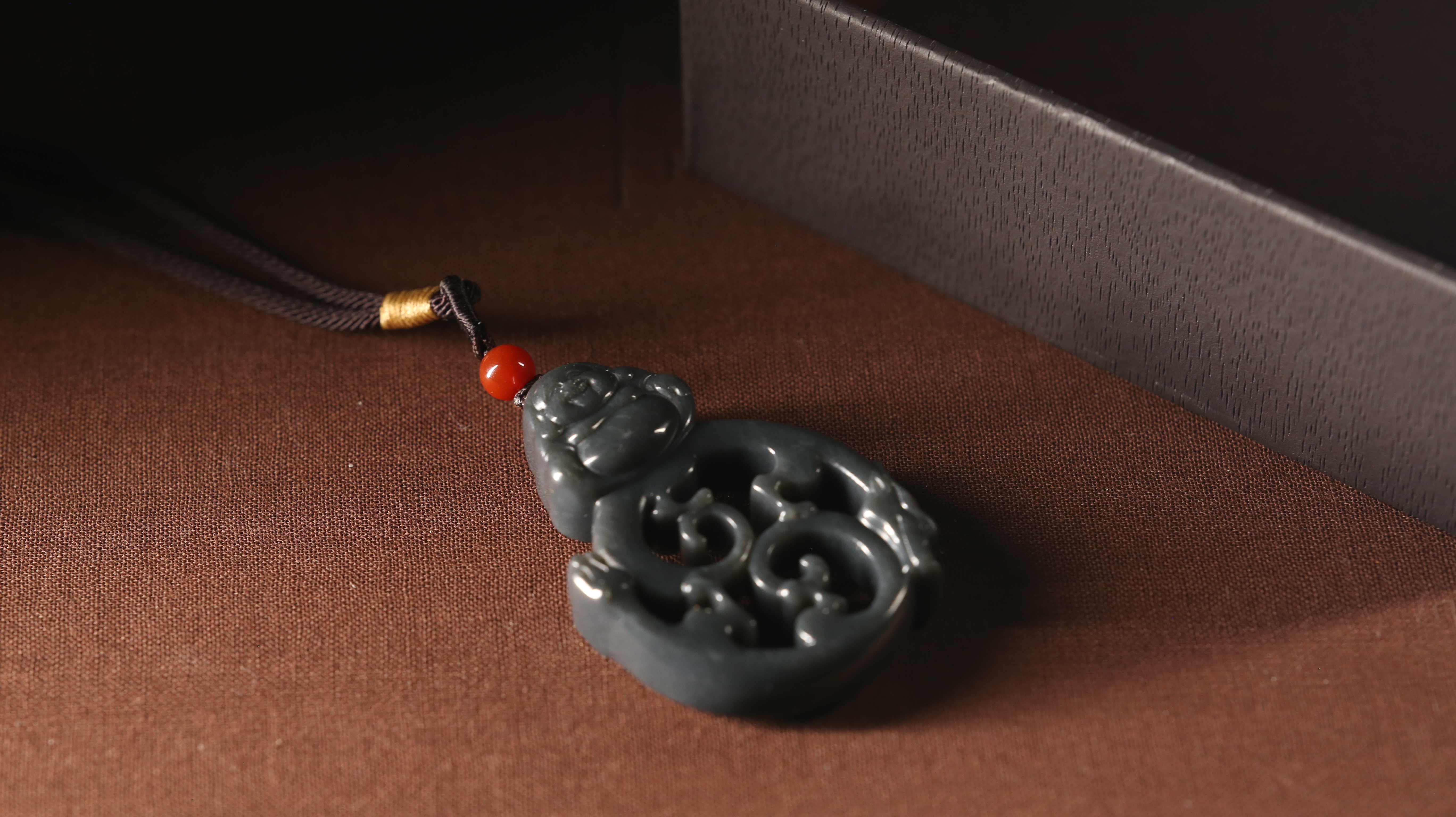 5弥勒佛公龙虎镂空吊坠(黑青) 本场迎新春特别拍卖会汇聚王者老师指导设计的几件守护——弥勒佛公龙虎镂空吊坠,其中5件且末蓝调款为春节定制;白玉、红玛瑙、黑青、青白玉几款为守护吊坠设计原型样品,未公开发行!!值此新春佳节,本场拍品全部无底价起拍,成交拍品均会赠送一份特别新年好礼,钜惠迎新,吉祥到家!马年大吉! 说明:贵重物品,为了保证快递时效及物品安全,本场成交拍品如需年前发货请联系官方客服确认!!