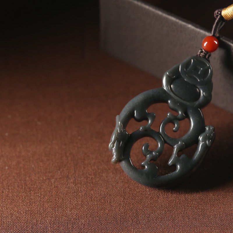 5弥勒佛公龙虎镂空吊坠(黑青)