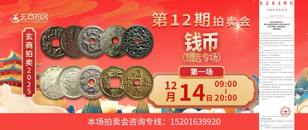 甄选专场拍卖时间12月14日9点至20点。请广大藏友提前使用支付宝充值参拍保证金。[url=https://imgcdn-prd.xuanshang95.cn/file/0/1/442719/20251204/d4c52ffcfbe9ffa2bd9415477106f1d5.jpg]查看批文[/url] [参拍须知]